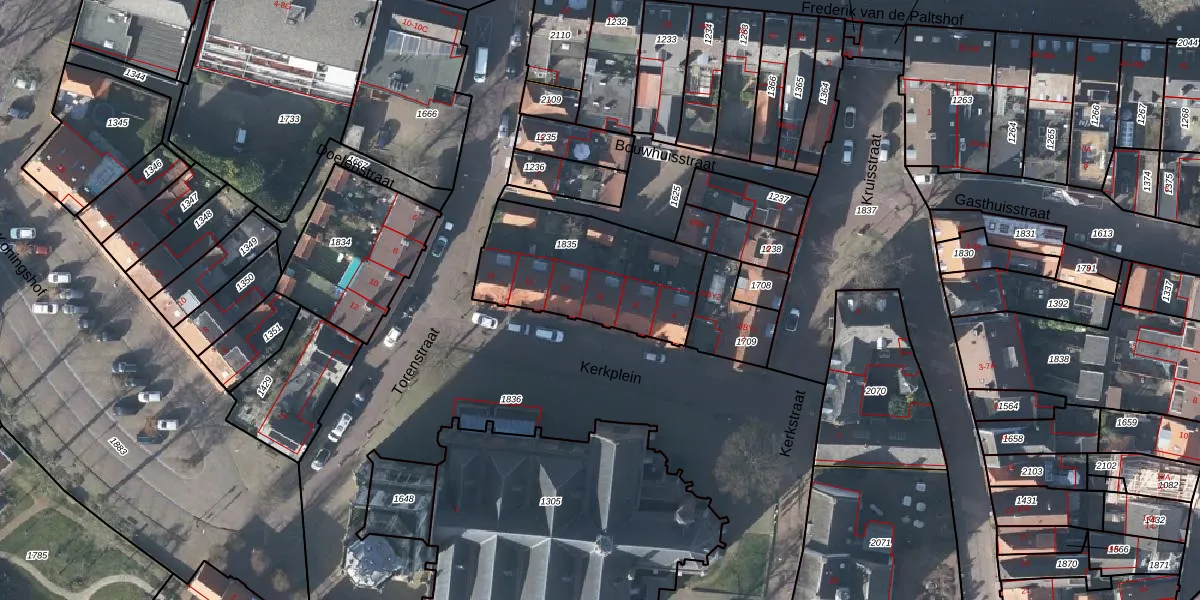 Het perceel waarop Kerkplein 8 staat heeft een oppervlakte van 616 m². Dit is een groot perceel. De perceeloppervlakte wordt geregistreerd door het Kadaster. Gedetailleerde informatie over de maten van dit perceel kunt u vinden in het rapport Kadastrale kaart met maatvoering van Kerkplein 8.
