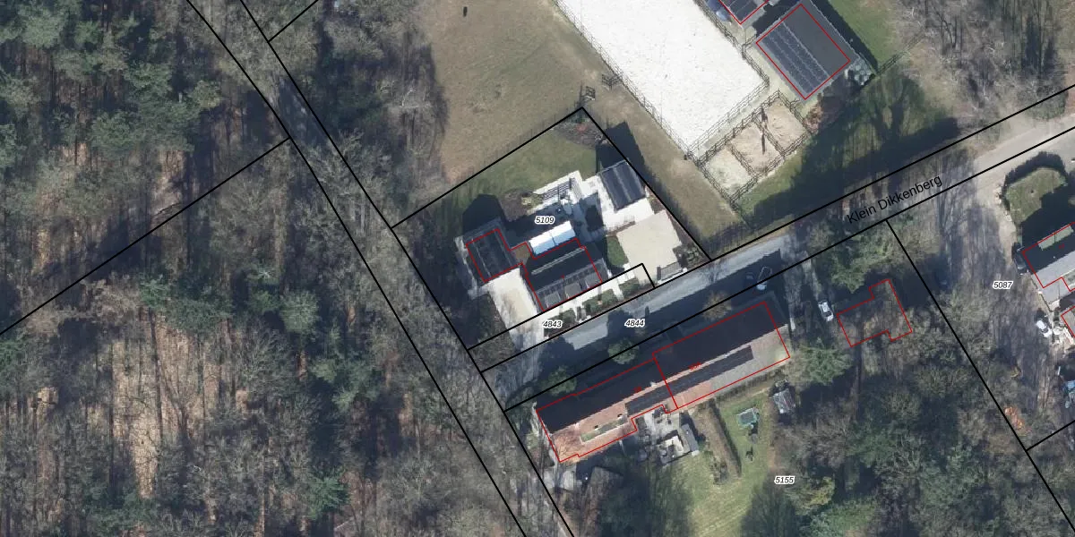 Het perceel waarop Klein Dikkenberg 7 staat heeft een oppervlakte van 1355 m². Dit is een zeer groot perceel. De perceeloppervlakte wordt geregistreerd door het Kadaster. Gedetailleerde informatie over de maten van dit perceel kunt u vinden in het rapport Kadastrale kaart met maatvoering van Klein Dikkenberg 7.