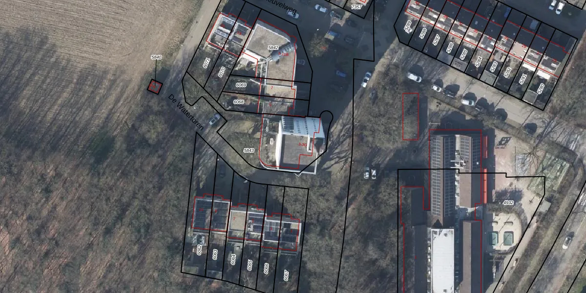 Het perceel waarop het adres ligt is RNN01-H-5843. De afkorting 'RNN01' staat voor kadastrale gemeente Rhenen. De gemiddelde perceelgrootte in Rhenen is 4282,3 m². Dit perceel is kleiner: de perceeloppervlakte bedraagt 650 m². De grootste perceeloppervlakte in de kadastrale gemeente is 1,05 km². De kleinste oppervlakte bedraagt 0 m². Op het perceel liggen in totaal 8 adressen. De huidige grenzen van het perceel zijn digitaal in de Basisregistratie Kadaster (BRK) geregistreerd op 19-03-2002.