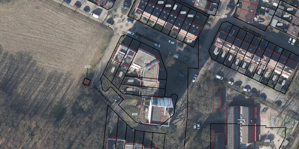 Koerheuvelweg 9-B is gelegen op kadastraal perceel RNN01H5842. Deze kadastrale aanduiding is uniek en wordt gebruikt door het Kadaster om eigendomsrechten en andere zakelijke rechten vast te leggen. Het perceel maakt onderdeel uit van de kadastrale gemeente Rhenen.