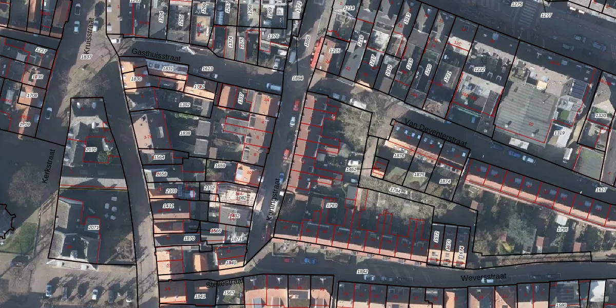 Het perceel waarop Koningstraat 9 staat heeft een oppervlakte van 1604 m². Dit is een zeer groot perceel. De perceeloppervlakte wordt geregistreerd door het Kadaster. Gedetailleerde informatie over de maten van dit perceel kunt u vinden in het rapport Kadastrale kaart met maatvoering van Koningstraat 9.