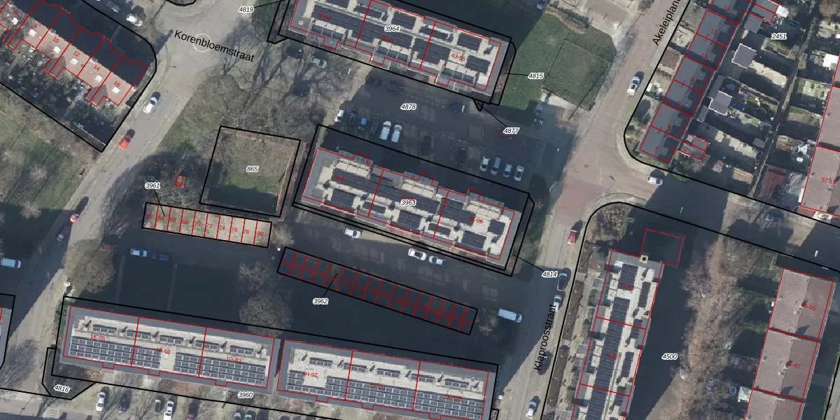 Korenbloemstraat 40 is gelegen op kadastraal perceel RNN01G3963. Deze kadastrale aanduiding is uniek en wordt gebruikt door het Kadaster om eigendomsrechten en andere zakelijke rechten vast te leggen. Het perceel maakt onderdeel uit van de kadastrale gemeente Rhenen.