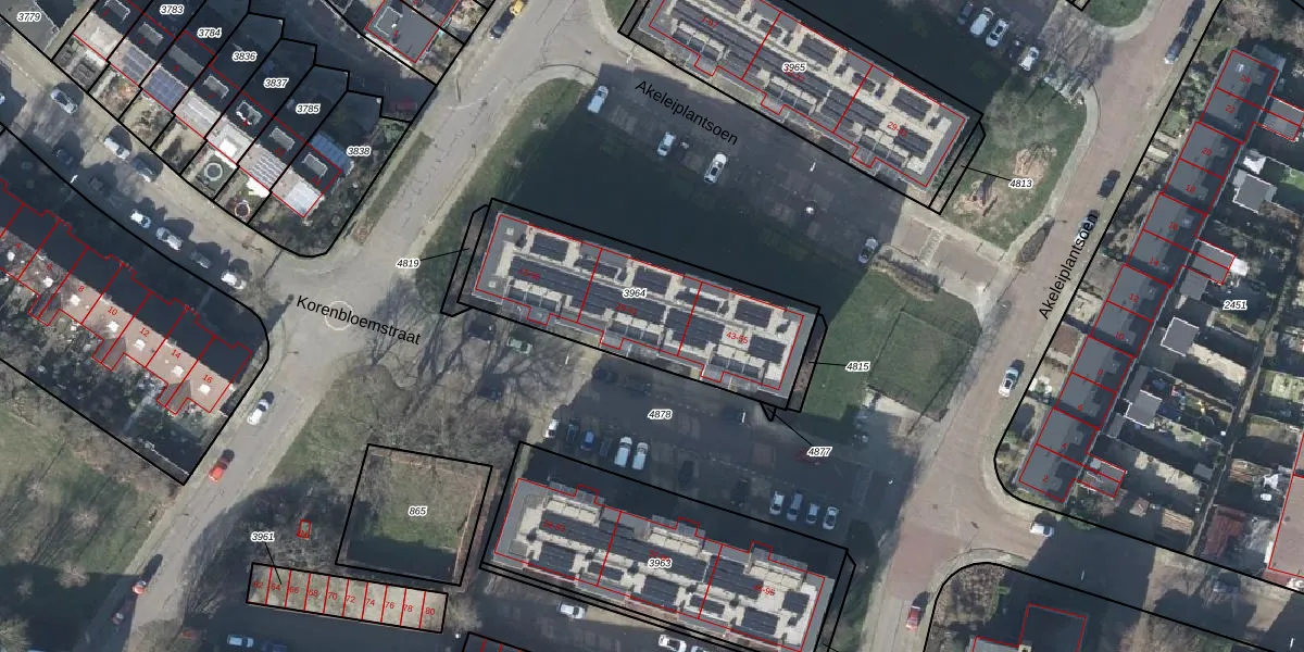 Het perceel waarop Korenbloemstraat 41 staat heeft een oppervlakte van 891 m². Dit is een groot perceel. De perceeloppervlakte wordt geregistreerd door het Kadaster. Gedetailleerde informatie over de maten van dit perceel kunt u vinden in het rapport Kadastrale kaart met maatvoering van Korenbloemstraat 41.