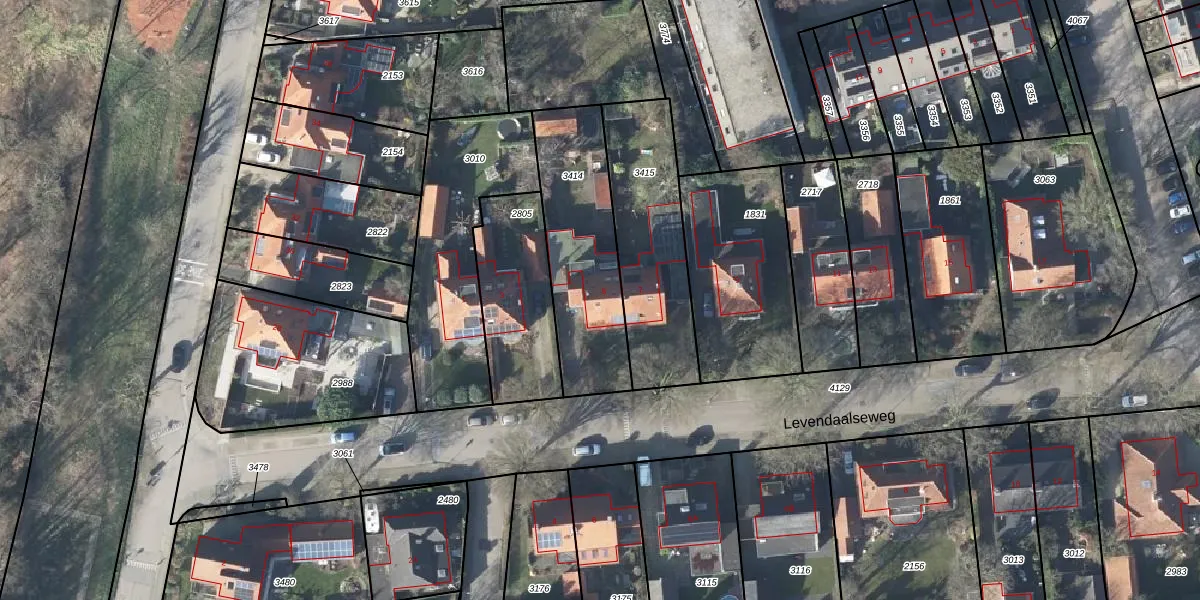 Levendaalseweg 5 is gelegen op kadastraal perceel RNN01E3414. Deze kadastrale aanduiding is uniek en wordt gebruikt door het Kadaster om eigendomsrechten en andere zakelijke rechten vast te leggen. Het perceel maakt onderdeel uit van de kadastrale gemeente Rhenen.