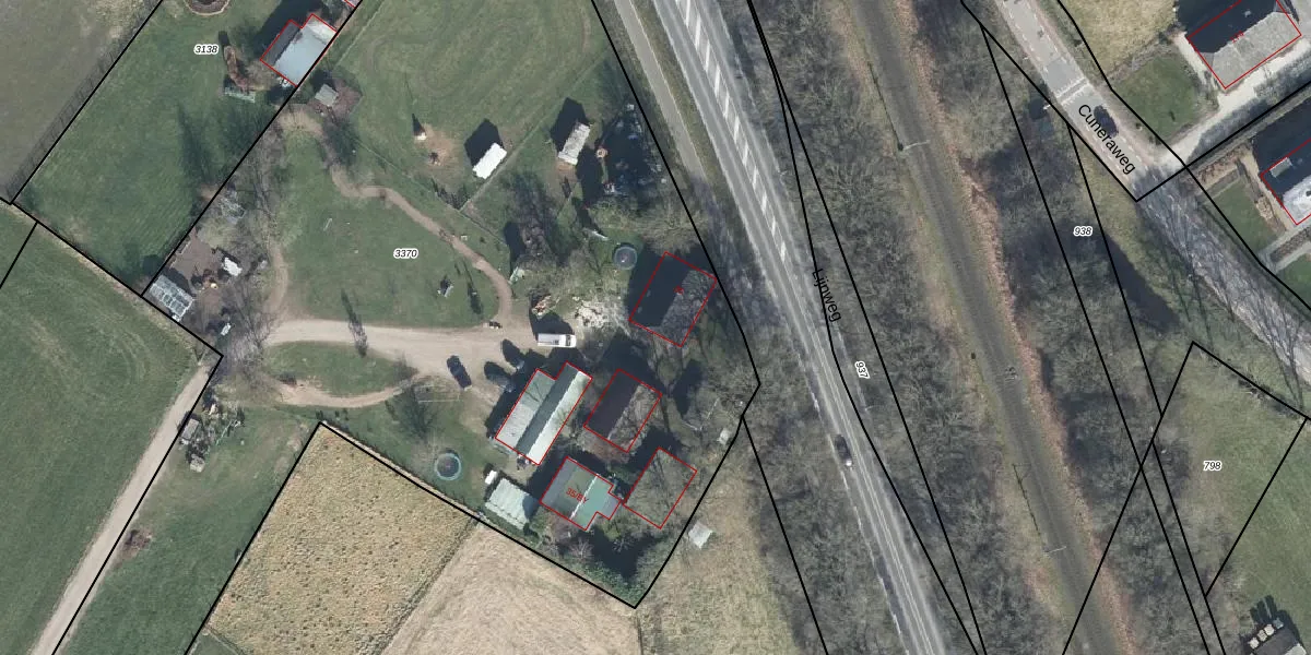Het perceel waarop Lijnweg 35 staat heeft een oppervlakte van 7997 m². Dit is een zeer groot perceel. De perceeloppervlakte wordt geregistreerd door het Kadaster. Gedetailleerde informatie over de maten van dit perceel kunt u vinden in het rapport Kadastrale kaart met maatvoering van Lijnweg 35.