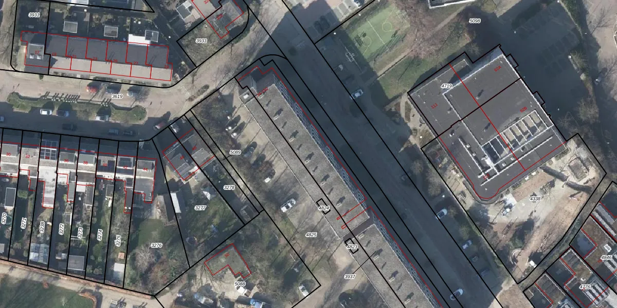 Het perceel waarop het adres ligt is RNN01-G-3937. De afkorting 'RNN01' staat voor kadastrale gemeente Rhenen. Het perceel is kleiner dan gemiddeld in Rhenen. Het perceel is 1425 m² groot, terwijl het gemiddelde ligt op 4282,3 m². De grootste perceeloppervlakte in de kadastrale gemeente is 1,05 km². De kleinste oppervlakte bedraagt 0 m². Op het perceel zijn 68 adressen aanwezig. In de Basisregistratie Kadaster (BRK) werden de grenzen van het perceel geregistreerd op 08-03-2000.