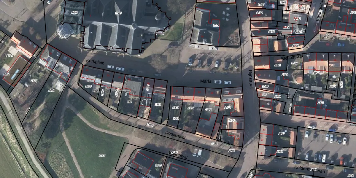 Het perceel waarop Markt 8 staat heeft een oppervlakte van 157 m². Dit is een middelgroot perceel. De perceeloppervlakte wordt geregistreerd door het Kadaster. Gedetailleerde informatie over de maten van dit perceel kunt u vinden in het rapport Kadastrale kaart met maatvoering van Markt 8.