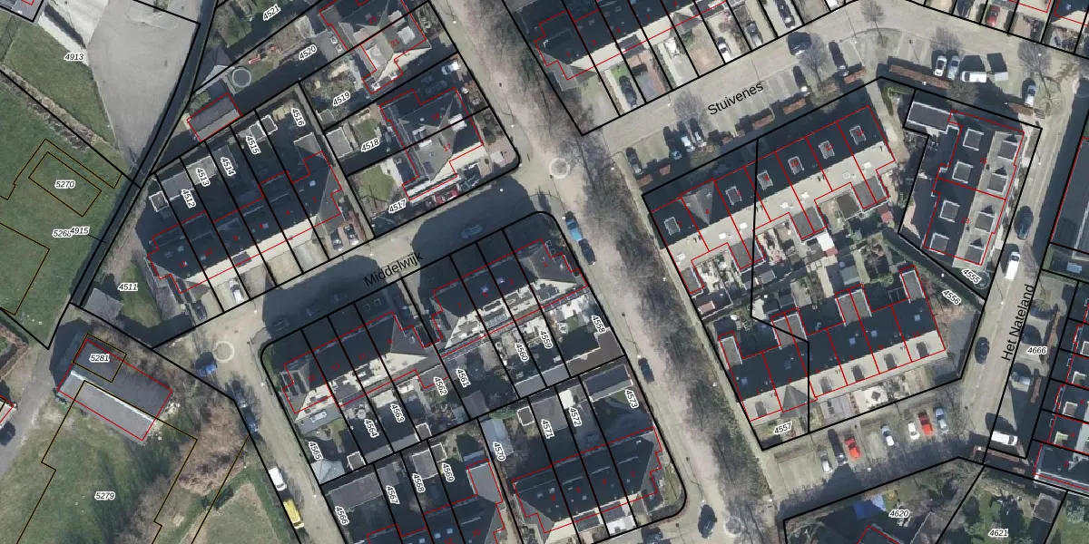 Het perceel waarop Middelwijk 1 staat heeft een oppervlakte van 300 m². Dit is een groot perceel. De perceeloppervlakte wordt geregistreerd door het Kadaster. Gedetailleerde informatie over de maten van dit perceel kunt u vinden in het rapport Kadastrale kaart met maatvoering van Middelwijk 1.