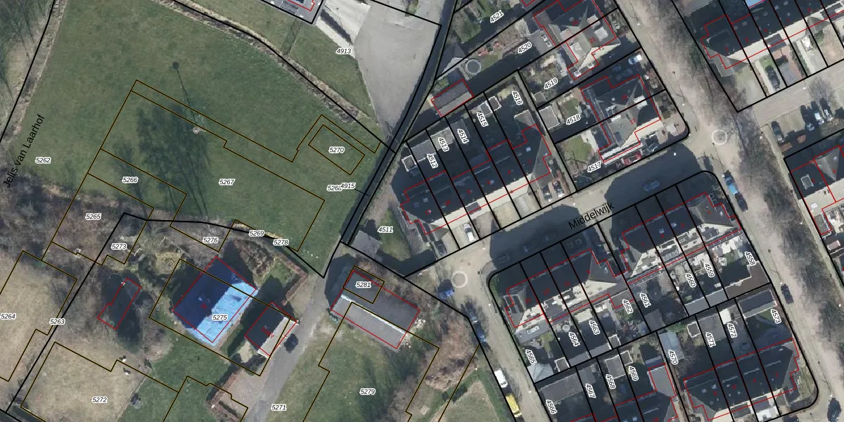 Middelwijk 12 is gelegen op kadastraal perceel RNN01G4511. Deze kadastrale aanduiding is uniek en wordt gebruikt door het Kadaster om eigendomsrechten en andere zakelijke rechten vast te leggen. Het perceel maakt onderdeel uit van de kadastrale gemeente Rhenen.