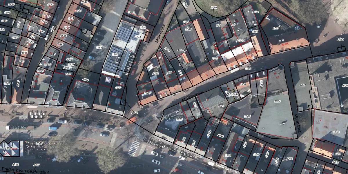Het perceel waarop Molenstraat 5 staat heeft een oppervlakte van 166 m². Dit is een middelgroot perceel. De perceeloppervlakte wordt geregistreerd door het Kadaster. Gedetailleerde informatie over de maten van dit perceel kunt u vinden in het rapport Kadastrale kaart met maatvoering van Molenstraat 5.