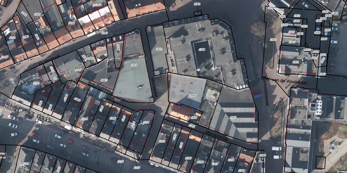Het perceel waarop Muntstraat 4 staat heeft een oppervlakte van 597 m². Dit is een groot perceel. De perceeloppervlakte wordt geregistreerd door het Kadaster. Gedetailleerde informatie over de maten van dit perceel kunt u vinden in het rapport Kadastrale kaart met maatvoering van Muntstraat 4.