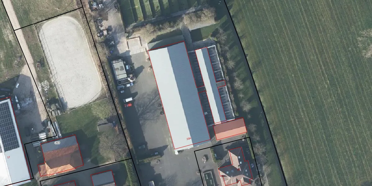 Het perceel waarop Nude 23-A staat heeft een oppervlakte van 2,1 ha. Dit is een zeer groot perceel. De perceeloppervlakte wordt geregistreerd door het Kadaster. Gedetailleerde informatie over de maten van dit perceel kunt u vinden in het rapport Kadastrale kaart met maatvoering van Nude 23-A.