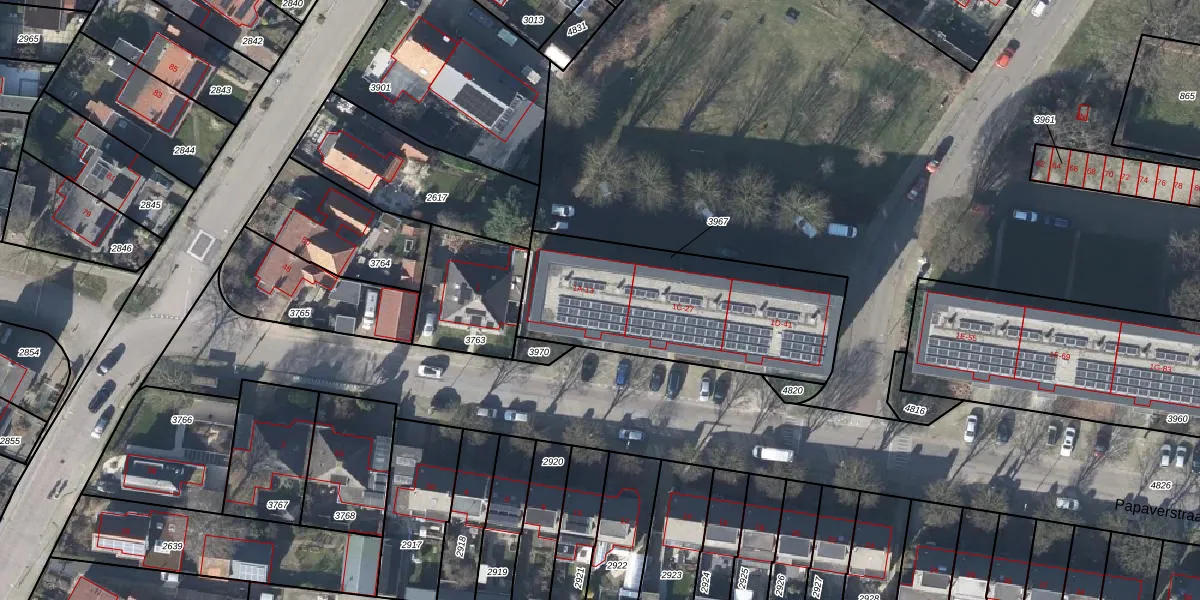 Het perceel waarop Papaverstraat 13 staat heeft een oppervlakte van 957 m². Dit is een groot perceel. De perceeloppervlakte wordt geregistreerd door het Kadaster. Gedetailleerde informatie over de maten van dit perceel kunt u vinden in het rapport Kadastrale kaart met maatvoering van Papaverstraat 13.