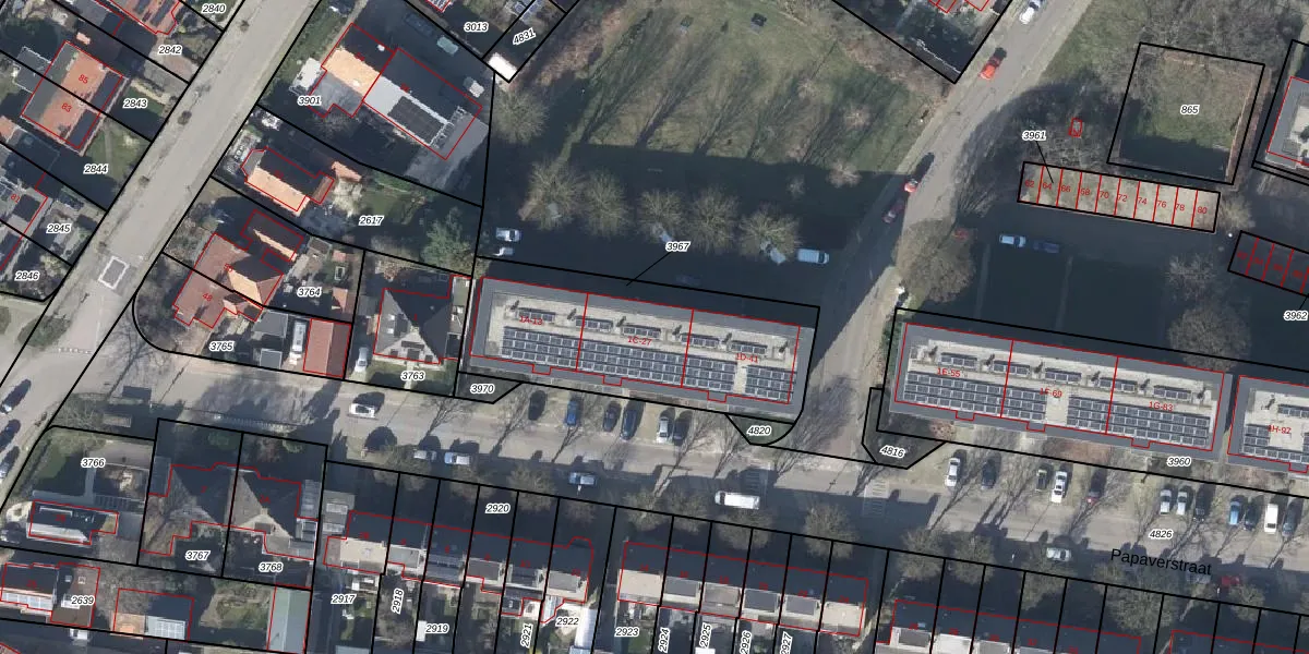 Het perceel waarop Papaverstraat 21 staat heeft een oppervlakte van 957 m². Dit is een groot perceel. De perceeloppervlakte wordt geregistreerd door het Kadaster. Gedetailleerde informatie over de maten van dit perceel kunt u vinden in het rapport Kadastrale kaart met maatvoering van Papaverstraat 21.