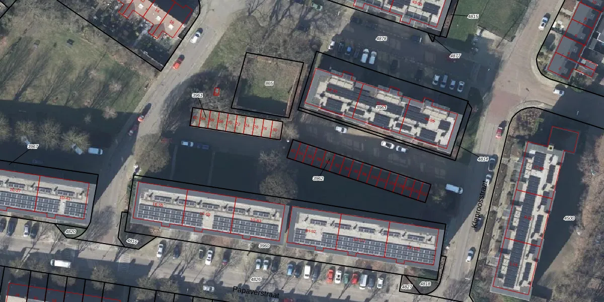 Papaverstraat 84 is gelegen op kadastraal perceel RNN01G3962. Deze kadastrale aanduiding is uniek en wordt gebruikt door het Kadaster om eigendomsrechten en andere zakelijke rechten vast te leggen. Het perceel maakt onderdeel uit van de kadastrale gemeente Rhenen.