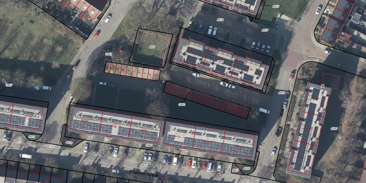 Papaverstraat 88 is gelegen op kadastraal perceel RNN01G3962. Deze kadastrale aanduiding is uniek en wordt gebruikt door het Kadaster om eigendomsrechten en andere zakelijke rechten vast te leggen. Het perceel maakt onderdeel uit van de kadastrale gemeente Rhenen.