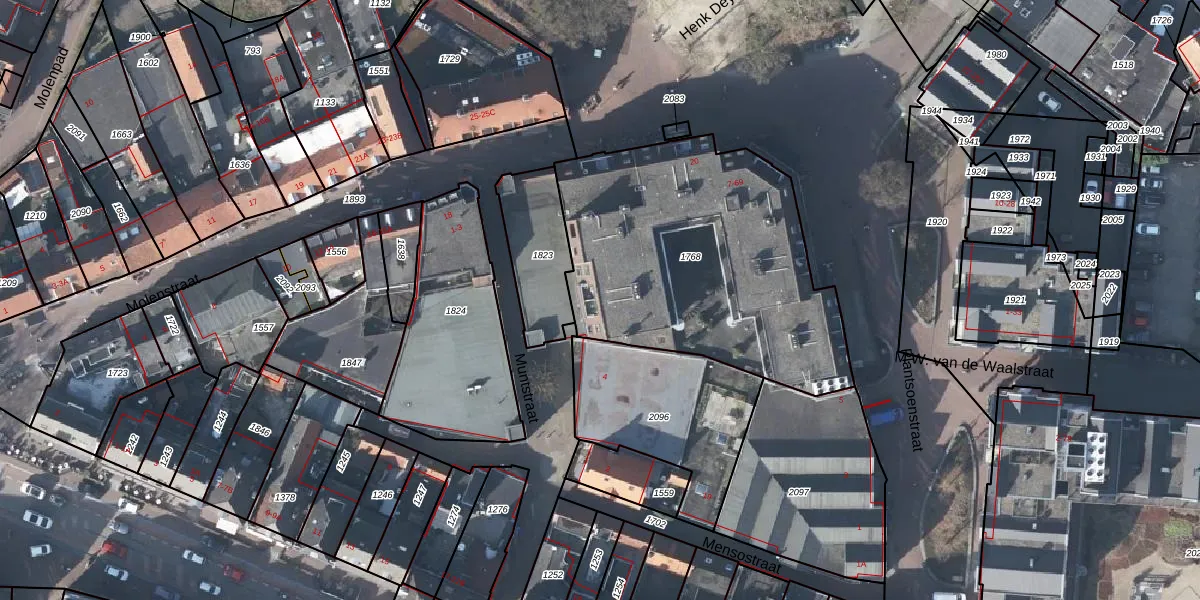 Het perceel waarop het adres ligt is RNN01-F-1768. De afkorting 'RNN01' staat voor kadastrale gemeente Rhenen. Het perceel is kleiner dan gemiddeld in Rhenen. Het perceel is 1486 m² groot, terwijl het gemiddelde ligt op 4297,44 m². Het kleinste perceel in de kadastrale gemeente is 0 m² groot. De grootste perceeloppervlakte is 1,05 km². Op het perceel zijn 33 adressen aanwezig. De huidige grenzen van het perceel zijn digitaal in de Basisregistratie Kadaster (BRK) geregistreerd op 15-05-2024.