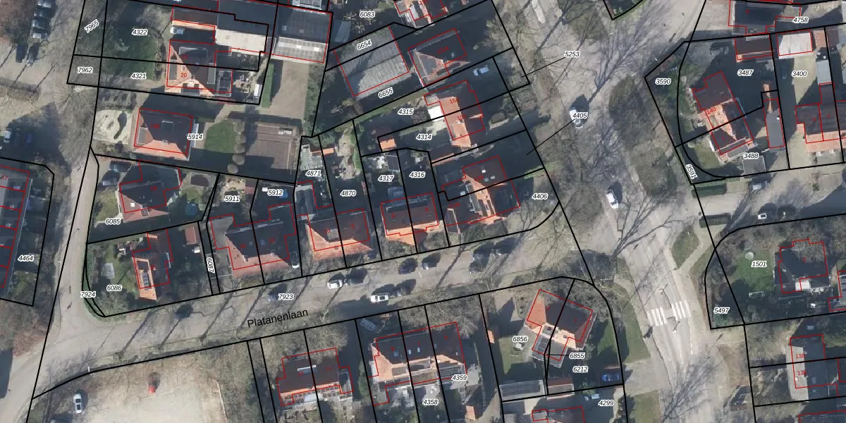 Gebruik de zoekbalk of klik op een perceel voor informatie over de adressen binnen dit perceel.