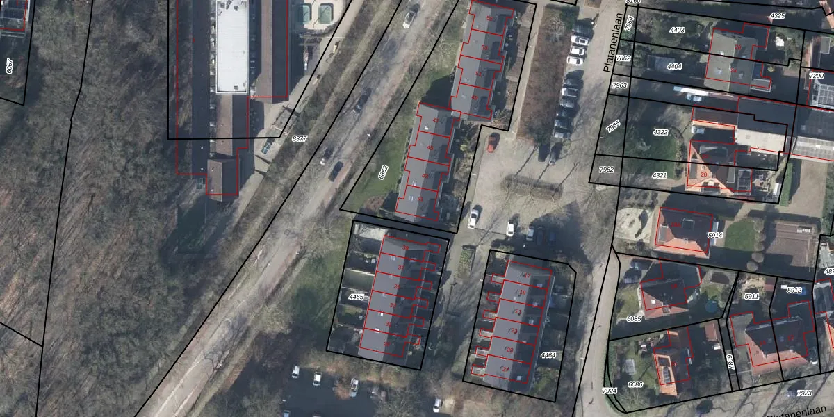 Platanenlaan 41 is gelegen op kadastraal perceel RNN01H6862. Deze kadastrale aanduiding is uniek en wordt gebruikt door het Kadaster om eigendomsrechten en andere zakelijke rechten vast te leggen. Het perceel maakt onderdeel uit van de kadastrale gemeente Rhenen.