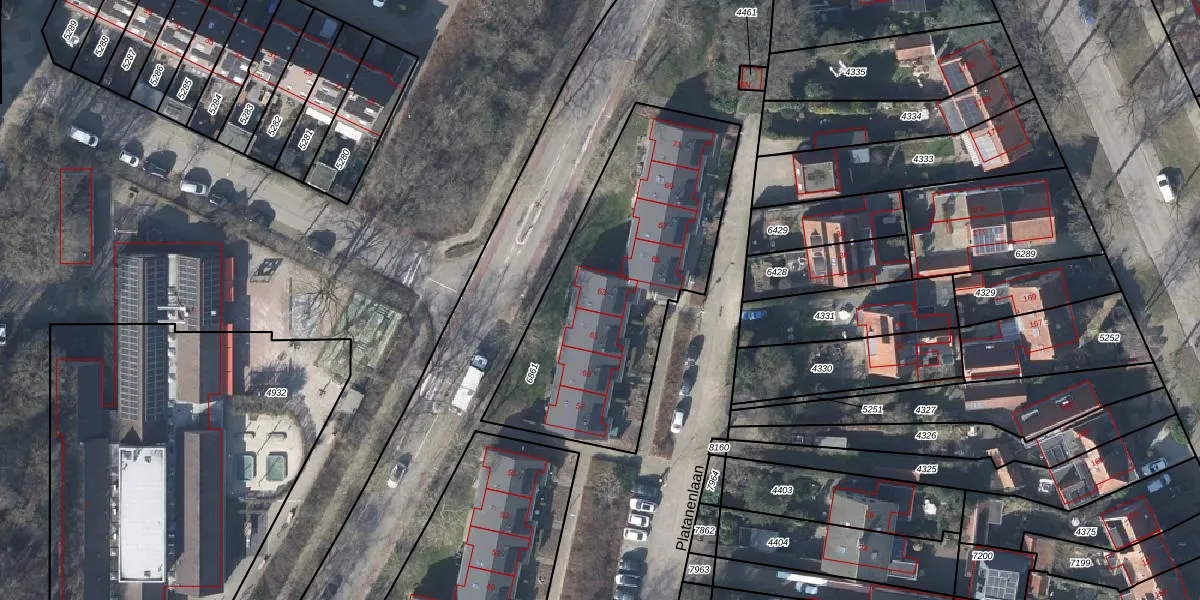 Platanenlaan 63 is gelegen op kadastraal perceel RNN01H6861. Deze kadastrale aanduiding is uniek en wordt gebruikt door het Kadaster om eigendomsrechten en andere zakelijke rechten vast te leggen. Het perceel maakt onderdeel uit van de kadastrale gemeente Rhenen.