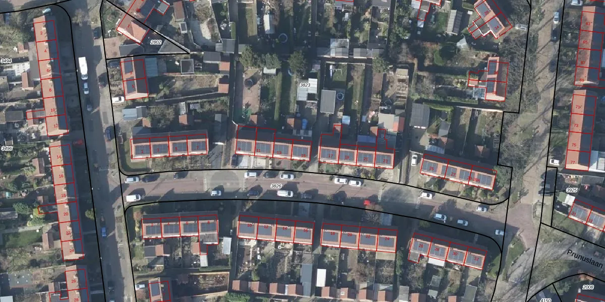 Prunuslaan 15 is gelegen op kadastraal perceel RNN01G3823. Deze kadastrale aanduiding is uniek en wordt gebruikt door het Kadaster om eigendomsrechten en andere zakelijke rechten vast te leggen. Het perceel maakt onderdeel uit van de kadastrale gemeente Rhenen.