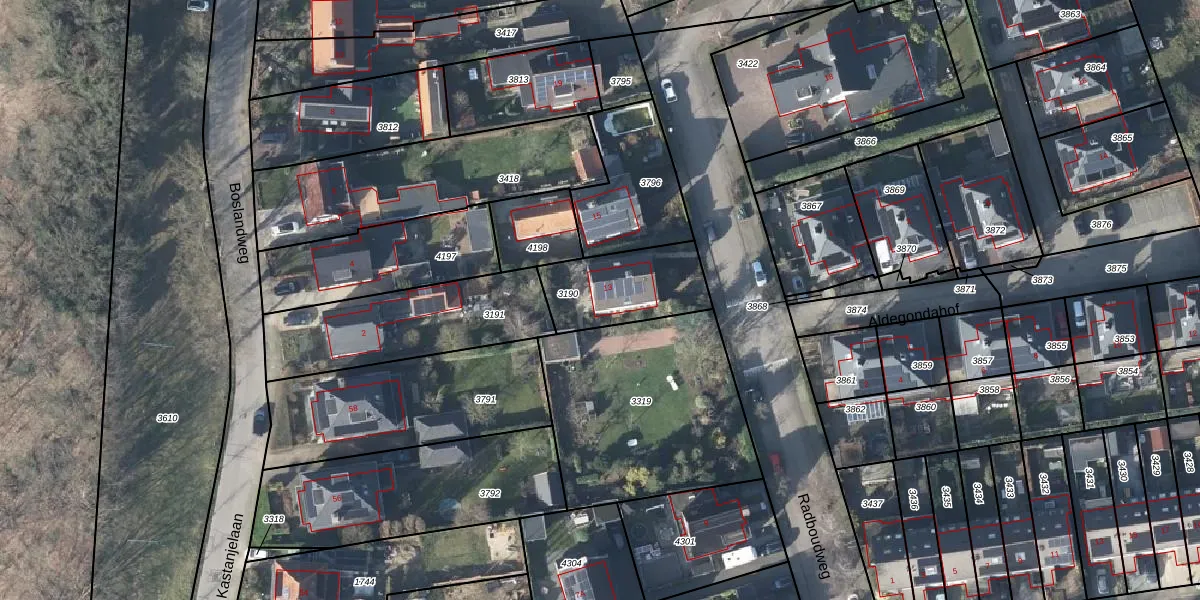 Radboudweg 13 is gelegen op kadastraal perceel RNN01E3190. Deze kadastrale aanduiding is uniek en wordt gebruikt door het Kadaster om eigendomsrechten en andere zakelijke rechten vast te leggen. Het perceel maakt onderdeel uit van de kadastrale gemeente Rhenen.