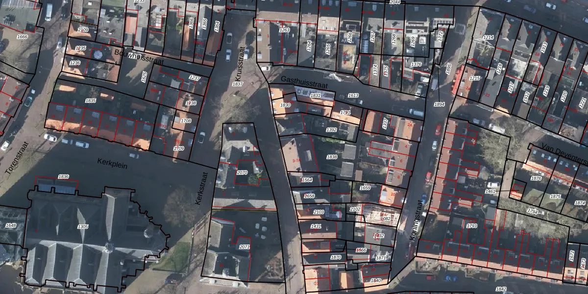 Het perceel waarop het adres ligt is RNN01-F-1838. De afkorting 'RNN01' staat voor kadastrale gemeente Rhenen. De gemiddelde perceelgrootte in Rhenen is 4282,3 m². Dit perceel is kleiner: de perceeloppervlakte bedraagt 654 m². Het kleinste perceel in de kadastrale gemeente is 0 m² groot. De grootste perceeloppervlakte is 1,05 km². Op het perceel zijn 7 adressen aanwezig. In de Basisregistratie Kadaster (BRK) werden de grenzen van het perceel geregistreerd op 18-08-2006.