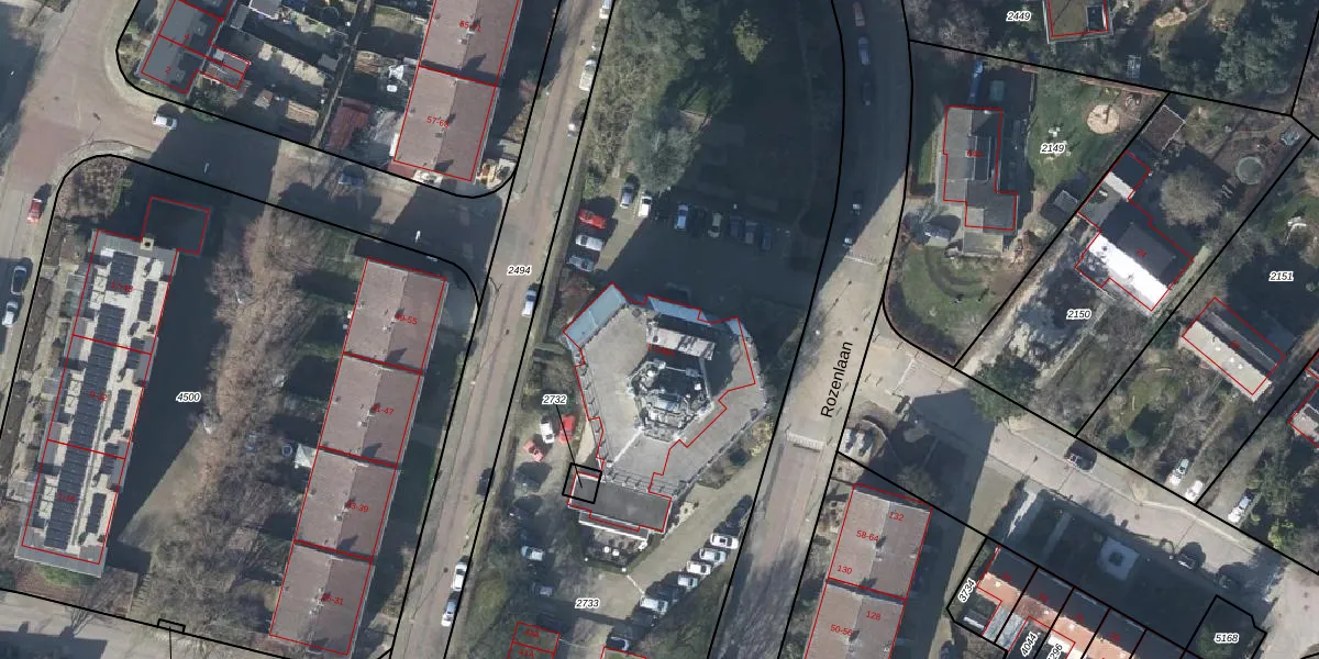Rozenlaan 127 is gelegen op kadastraal perceel RNN01G2733. Deze kadastrale aanduiding is uniek en wordt gebruikt door het Kadaster om eigendomsrechten en andere zakelijke rechten vast te leggen. Het perceel maakt onderdeel uit van de kadastrale gemeente Rhenen.