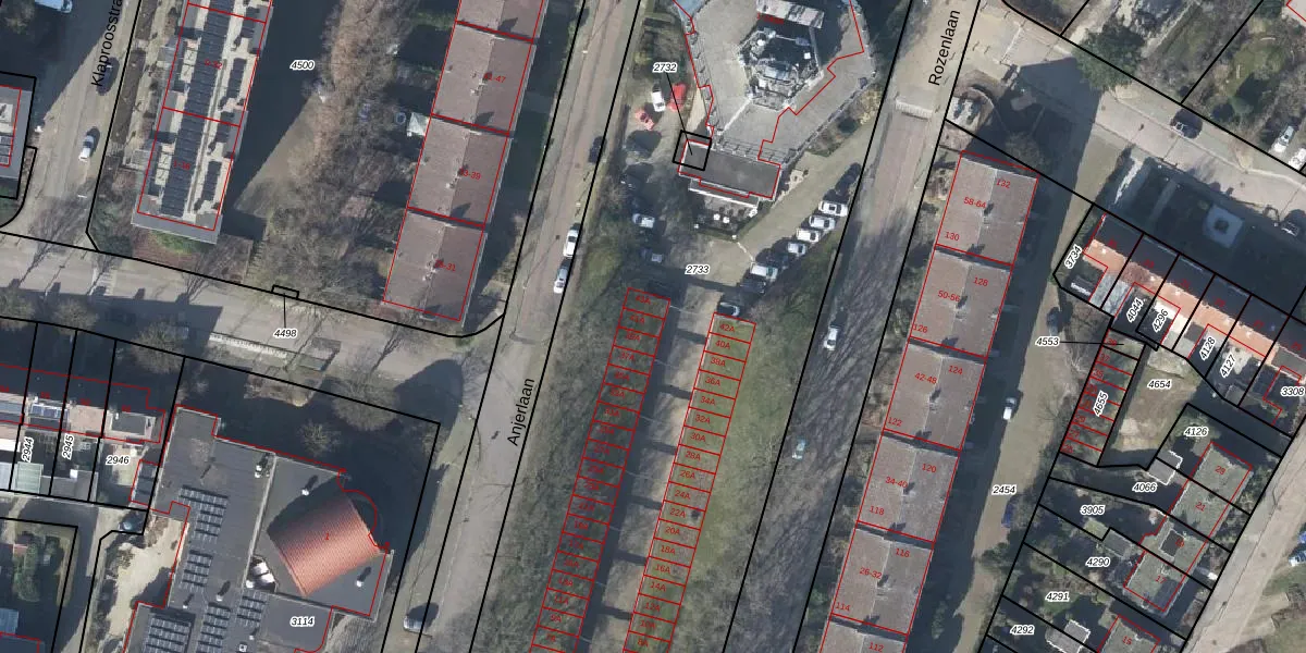Rozenlaan 41-A is gelegen op kadastraal perceel RNN01G2733. Deze kadastrale aanduiding is uniek en wordt gebruikt door het Kadaster om eigendomsrechten en andere zakelijke rechten vast te leggen. Het perceel maakt onderdeel uit van de kadastrale gemeente Rhenen.