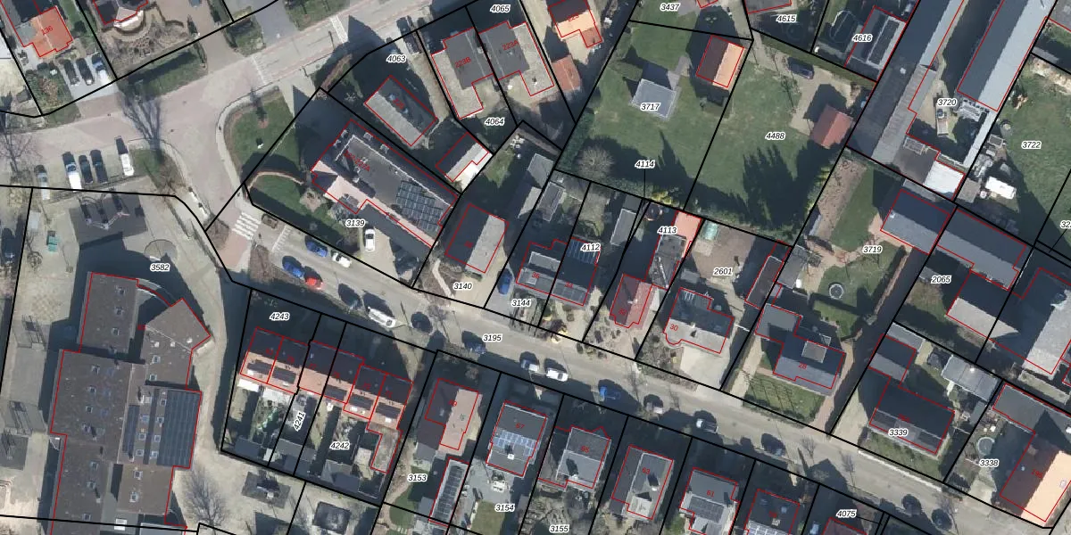 Gebruik de zoekbalk of klik op een perceel voor informatie over de adressen binnen dit perceel.