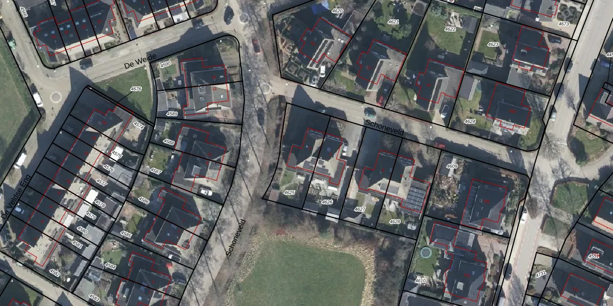 Het perceel waarop Schoneveld 2 staat heeft een oppervlakte van 419 m². Dit is een groot perceel. De perceeloppervlakte wordt geregistreerd door het Kadaster. Gedetailleerde informatie over de maten van dit perceel kunt u vinden in het rapport Kadastrale kaart met maatvoering van Schoneveld 2.