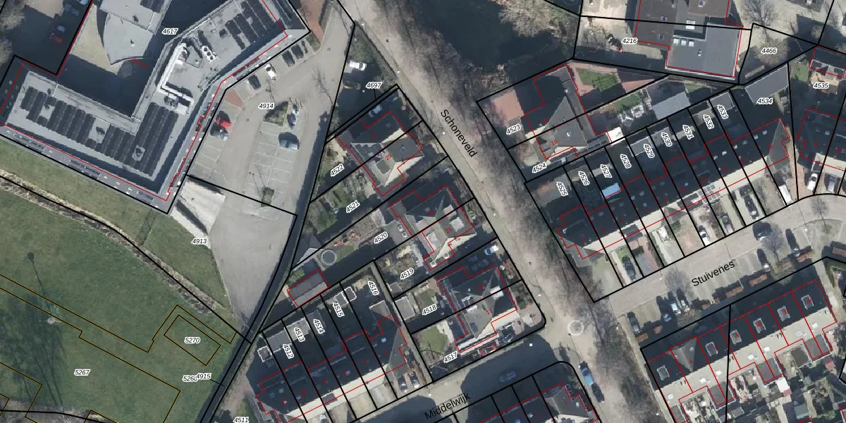 Het perceel waarop Schoneveld 23 staat heeft een oppervlakte van 526 m². Dit is een groot perceel. De perceeloppervlakte wordt geregistreerd door het Kadaster. Gedetailleerde informatie over de maten van dit perceel kunt u vinden in het rapport Kadastrale kaart met maatvoering van Schoneveld 23.