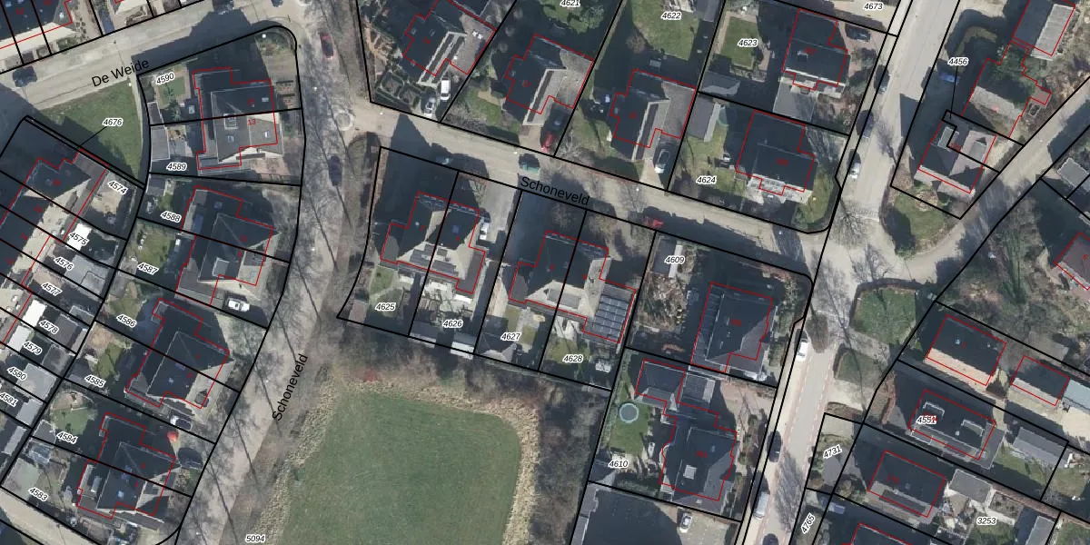 Het perceel waarop Schoneveld 6 staat heeft een oppervlakte van 385 m². Dit is een groot perceel. De perceeloppervlakte wordt geregistreerd door het Kadaster. Gedetailleerde informatie over de maten van dit perceel kunt u vinden in het rapport Kadastrale kaart met maatvoering van Schoneveld 6.