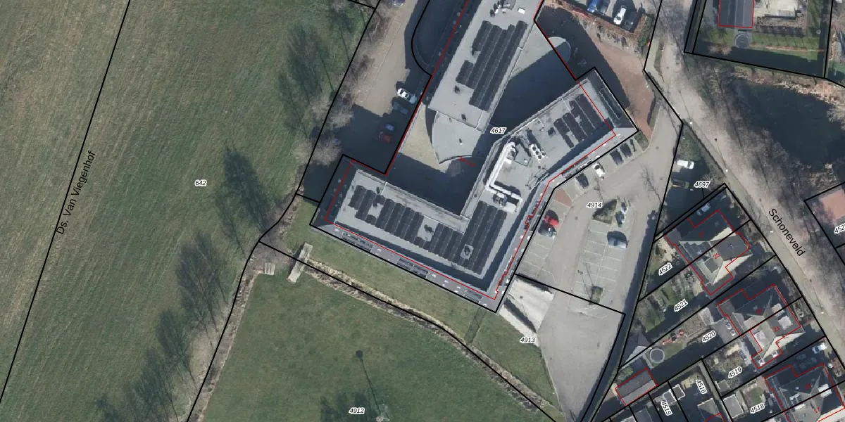 Het perceel waarop Schoneveld 67 staat heeft een oppervlakte van 3197 m². Dit is een zeer groot perceel. De perceeloppervlakte wordt geregistreerd door het Kadaster. Gedetailleerde informatie over de maten van dit perceel kunt u vinden in het rapport Kadastrale kaart met maatvoering van Schoneveld 67.