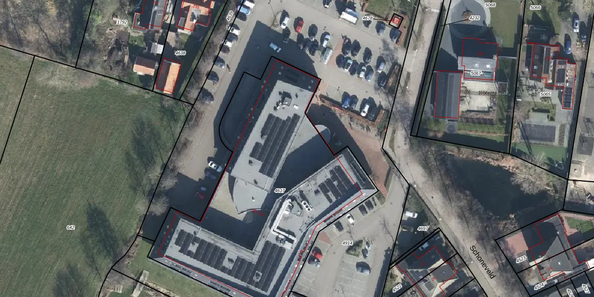 Het perceel waarop Schoneveld 71 staat heeft een oppervlakte van 3197 m². Dit is een zeer groot perceel. De perceeloppervlakte wordt geregistreerd door het Kadaster. Gedetailleerde informatie over de maten van dit perceel kunt u vinden in het rapport Kadastrale kaart met maatvoering van Schoneveld 71.