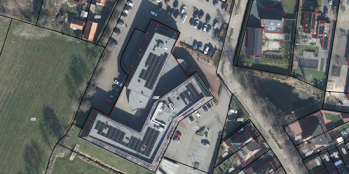 Het perceel waarop Schoneveld 95 staat heeft een oppervlakte van 3197 m². Dit is een zeer groot perceel. De perceeloppervlakte wordt geregistreerd door het Kadaster. Gedetailleerde informatie over de maten van dit perceel kunt u vinden in het rapport Kadastrale kaart met maatvoering van Schoneveld 95.