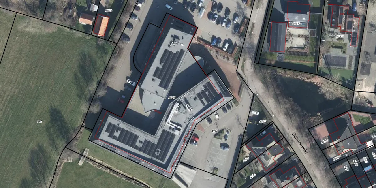 Het perceel waarop Schoneveld 97 staat heeft een oppervlakte van 3197 m². Dit is een zeer groot perceel. De perceeloppervlakte wordt geregistreerd door het Kadaster. Gedetailleerde informatie over de maten van dit perceel kunt u vinden in het rapport Kadastrale kaart met maatvoering van Schoneveld 97.