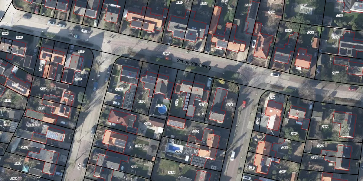 Simon Stevinweg 16 is gelegen op kadastraal perceel RNN01E2372. Deze kadastrale aanduiding is uniek en wordt gebruikt door het Kadaster om eigendomsrechten en andere zakelijke rechten vast te leggen. Het perceel maakt onderdeel uit van de kadastrale gemeente Rhenen.