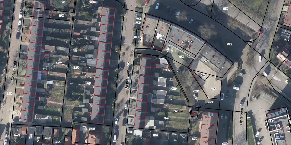 Sparrenlaan 14 is gelegen op kadastraal perceel RNN01G3974. Deze kadastrale aanduiding is uniek en wordt gebruikt door het Kadaster om eigendomsrechten en andere zakelijke rechten vast te leggen. Het perceel maakt onderdeel uit van de kadastrale gemeente Rhenen.