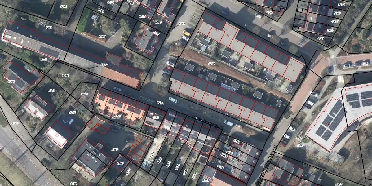 Spitsbergerpad 16 is gelegen op kadastraal perceel RNN01H6060. Deze kadastrale aanduiding is uniek en wordt gebruikt door het Kadaster om eigendomsrechten en andere zakelijke rechten vast te leggen. Het perceel maakt onderdeel uit van de kadastrale gemeente Rhenen.