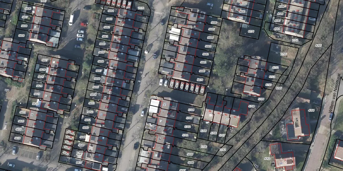 Het perceel waarop het adres ligt is RNN01-H-5672. De afkorting 'RNN01' staat voor kadastrale gemeente Rhenen. Het perceel is kleiner dan gemiddeld in Rhenen. Het perceel is 18 m² groot, terwijl het gemiddelde ligt op 4285,65 m². De grootste perceeloppervlakte in de kadastrale gemeente is 1,05 km². De kleinste oppervlakte bedraagt 0 m². Er zijn geen andere adressen aanwezig op het perceel. In de Basisregistratie Kadaster (BRK) werden de grenzen van het perceel geregistreerd op 29-08-2005.