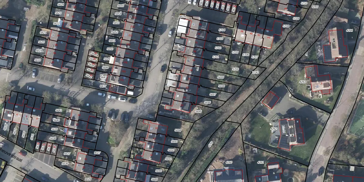 Het perceel waarop het adres ligt is RNN01-H-5697. De afkorting 'RNN01' staat voor kadastrale gemeente Rhenen. De gemiddelde perceelgrootte in Rhenen is 4286,91 m². Dit perceel is kleiner: de perceeloppervlakte bedraagt 187 m². Het grootste perceel in de kadastrale gemeente is 1,05 km². Het kleinste perceel heeft een oppervlakte van 0 m². Er zijn geen andere adressen aanwezig op het perceel. De huidige grenzen van het perceel zijn digitaal in de Basisregistratie Kadaster (BRK) geregistreerd op 29-08-2005.