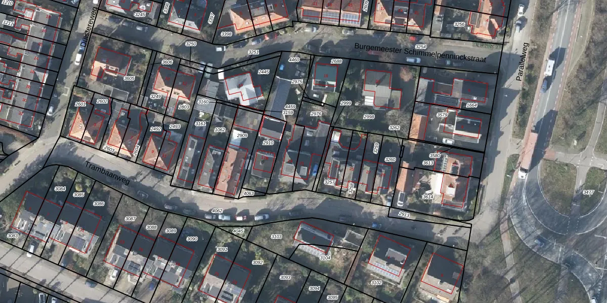Gebruik de zoekbalk of klik op een perceel voor informatie over de adressen binnen dit perceel.