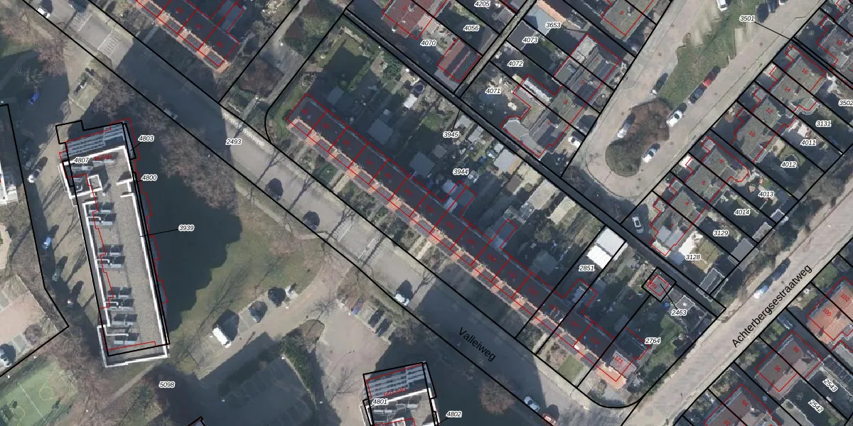 Het perceel waarop Valleiweg 103 staat heeft een oppervlakte van 2690 m². Dit is een zeer groot perceel. De perceeloppervlakte wordt geregistreerd door het Kadaster. Gedetailleerde informatie over de maten van dit perceel kunt u vinden in het rapport Kadastrale kaart met maatvoering van Valleiweg 103.
