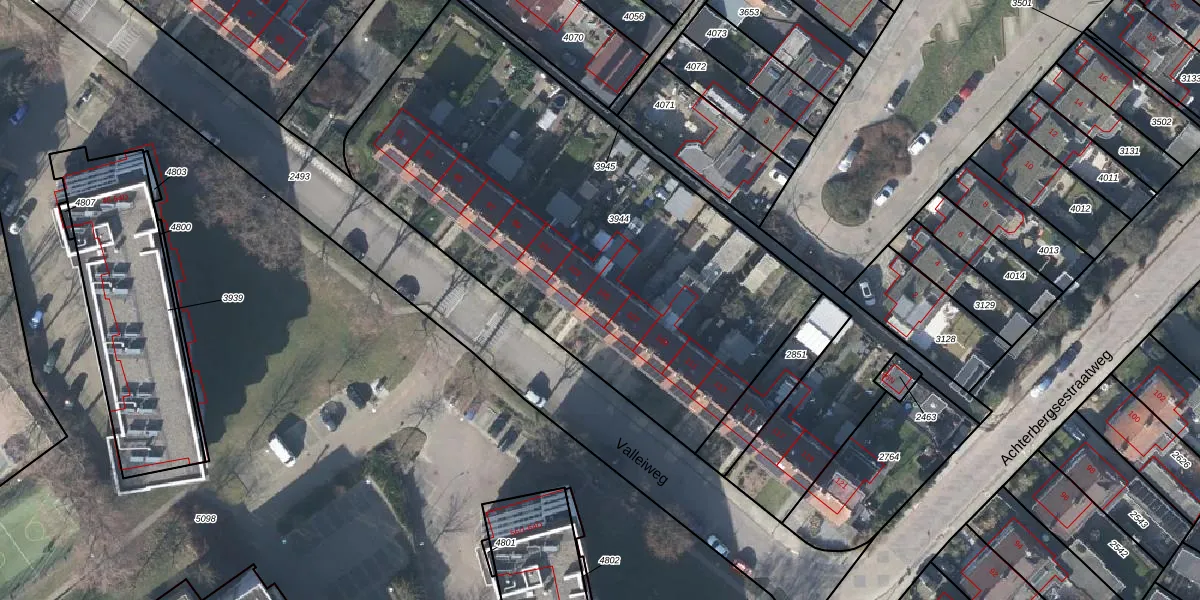Het perceel waarop Valleiweg 105 staat heeft een oppervlakte van 2690 m². Dit is een zeer groot perceel. De perceeloppervlakte wordt geregistreerd door het Kadaster. Gedetailleerde informatie over de maten van dit perceel kunt u vinden in het rapport Kadastrale kaart met maatvoering van Valleiweg 105.