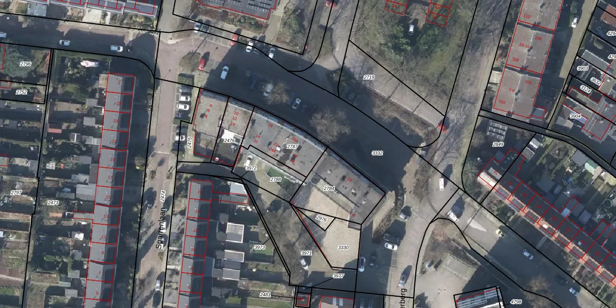 Het perceel waarop het adres ligt is RNN01-G-2787. De afkorting 'RNN01' staat voor kadastrale gemeente Rhenen. De gemiddelde perceelgrootte in Rhenen is 4294,49 m². Dit perceel is kleiner: de perceeloppervlakte bedraagt 319 m². Het kleinste perceel in de kadastrale gemeente is 0 m² groot. De grootste perceeloppervlakte is 1,05 km². Er zijn 8 adressen aanwezig op het perceel. De laatste wijziging in het de Basisregistratie Kadaster (BRK) was op 02-02-2000.
