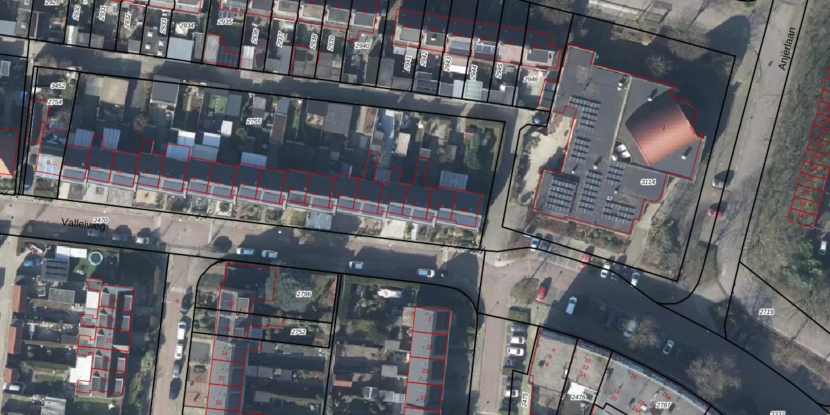 Het perceel waarop Valleiweg 39 staat heeft een oppervlakte van 3179 m². Dit is een zeer groot perceel. De perceeloppervlakte wordt geregistreerd door het Kadaster. Gedetailleerde informatie over de maten van dit perceel kunt u vinden in het rapport Kadastrale kaart met maatvoering van Valleiweg 39.