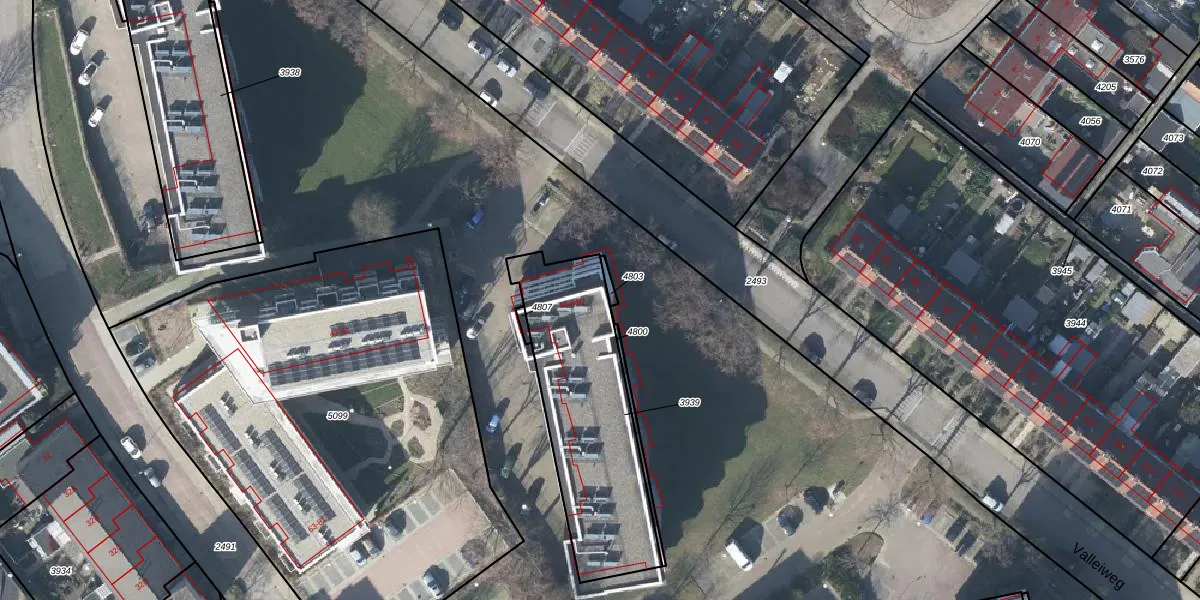Valleiweg 46-D is gelegen op kadastraal perceel RNN01G3939. Deze kadastrale aanduiding is uniek en wordt gebruikt door het Kadaster om eigendomsrechten en andere zakelijke rechten vast te leggen. Het perceel maakt onderdeel uit van de kadastrale gemeente Rhenen.