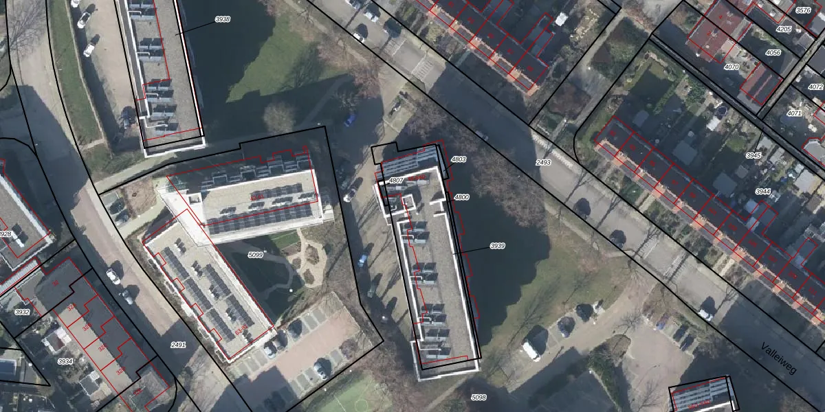 Valleiweg 48-A is gelegen op kadastraal perceel RNN01G3939. Deze kadastrale aanduiding is uniek en wordt gebruikt door het Kadaster om eigendomsrechten en andere zakelijke rechten vast te leggen. Het perceel maakt onderdeel uit van de kadastrale gemeente Rhenen.