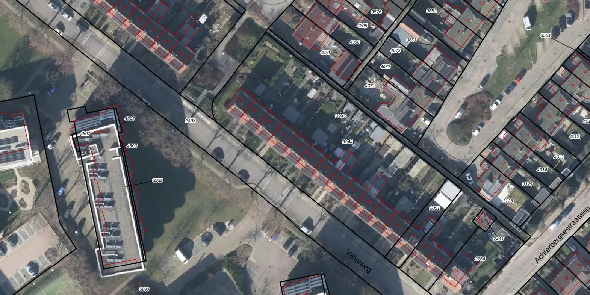 Het perceel waarop Valleiweg 99 staat heeft een oppervlakte van 2690 m². Dit is een zeer groot perceel. De perceeloppervlakte wordt geregistreerd door het Kadaster. Gedetailleerde informatie over de maten van dit perceel kunt u vinden in het rapport Kadastrale kaart met maatvoering van Valleiweg 99.